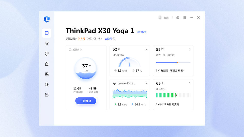 联想电脑管家除了核心的软件更新和卸载的功能之外,联想电脑管家还能够帮助使用者们很好的清理和维护自己的电脑系统,专属硬件管理等诸多功能可以帮助使用者们更好的了解决自家设备的情况。