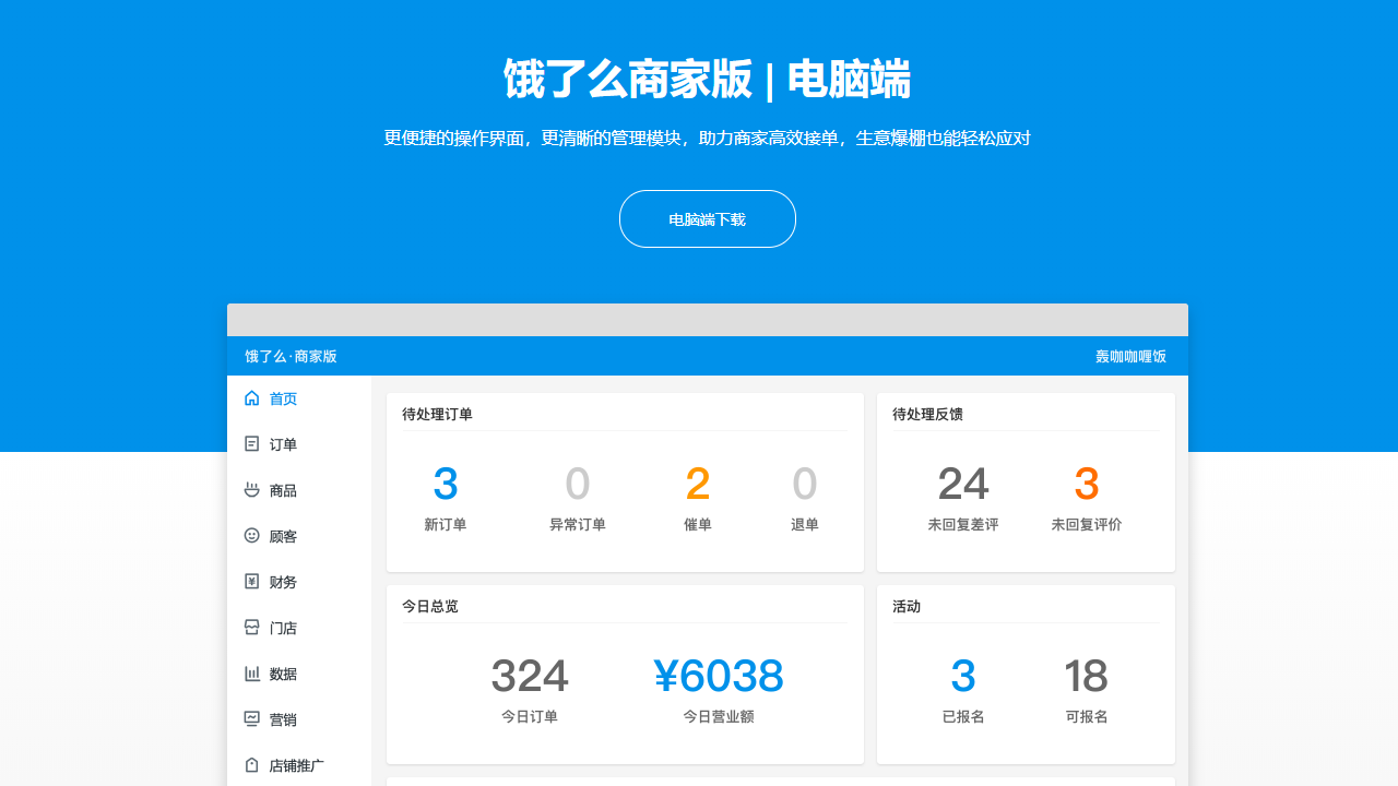 来自饿了么旗下为广大饿了么外卖的商户推出的专业的PC客户端软件,饿了么商家版主要是给商户们一个便捷的商品管理和上下架渠道以及接单平台,只要你的店铺上线营业之后,你就可以随时通过饿了么商家版来接受相关订单,还可以随时联系骑手配送哦!饿了么商家版便捷又好用。