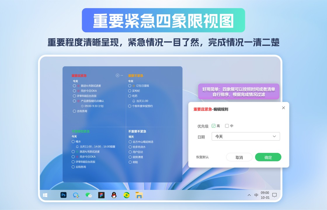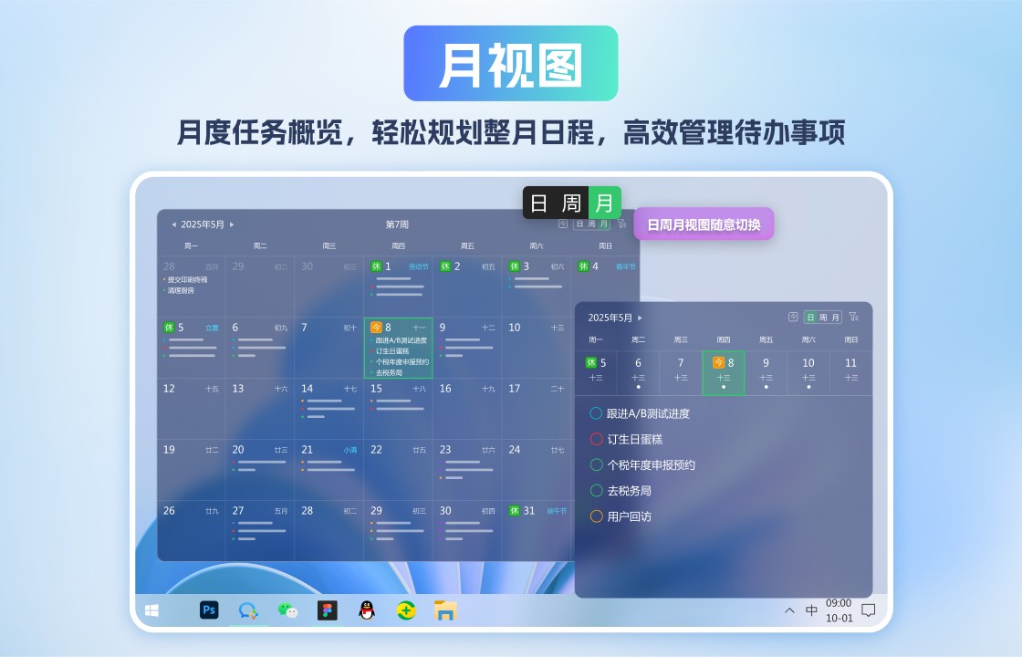 规划是实现目标的关键,而这款软件通过日月周视图为你提供了全面且细致的规划视角。在月视图中,你可以规划出整个月的重要节点,比如项目的里程碑、重要会议的时间、家庭聚会的日期等,从宏观上把握一个月的工作与生活节奏。周视图则聚焦于每周的重点,将月计划进一步细化,明确每周需要完成的关键任务,合理分配时间和精力。日视图则具体到每一天的待办事项,将周计划落实到日常行动中。通过这种短中期规划相结合的方式,你可以有条不紊地朝着目标前进,高效达成每一个计划,无论是长期的职业发展目标,还是短期的生活小目标,都能在你的掌控之中。