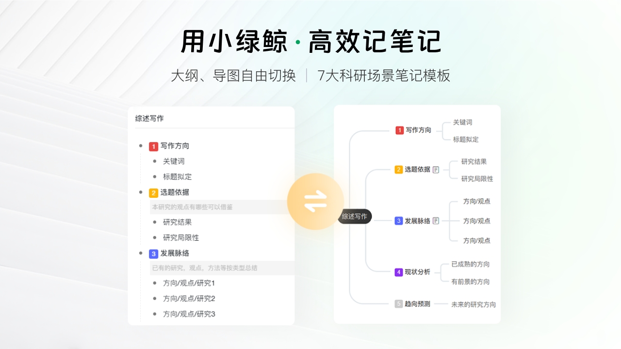随读随记:双模式切换,思路梳理:支持用户在阅读文献过程中便捷地进行笔记记录,并且提供大纲与导图两种自由切换的笔记模式。大纲模式适合构建文献的逻辑框架,梳理章节层次与主要内容;导图模式则以可视化的思维导图形式呈现文献的核心观点与关联关系,帮助用户更加直观地梳理文献思路,激发创新思维,促进知识整合与融会贯通。