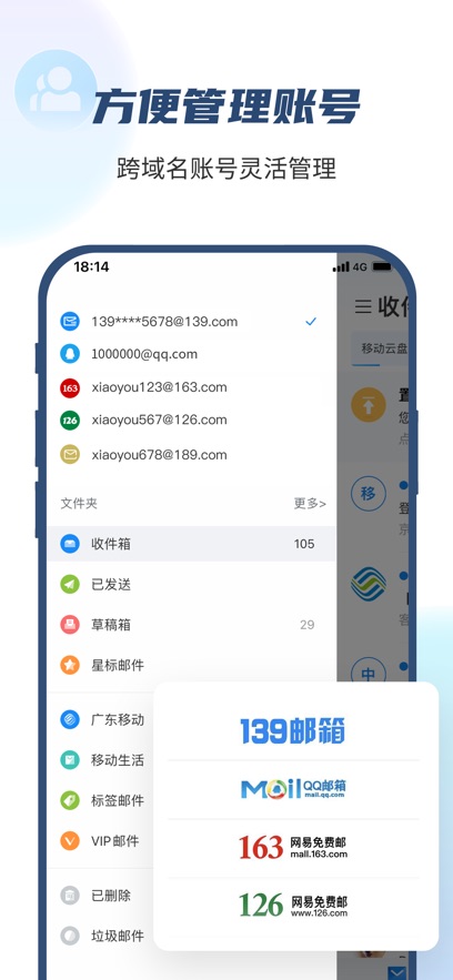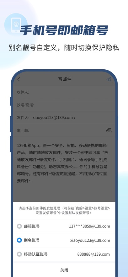 139邮箱客户端这是来自10086也就是中国移动旗下专门为所有移动手机用户而推出的专业级别的邮箱客户端,139邮箱客户端目前已经打通手机端、电脑端和网页端的数据互通。139邮箱客户端打通邮箱、网盘、手机账号、移动客户端等多个终端的数据信息互通,你只需要用你的手机账号你就可以随时登录上述平台。139邮箱客户端基于移动云盘还可以安全云备份附件、微信文件、手机照片、通讯录等手机资料,使用语音转写笔记、文件资料共享群,更有AI智能写作工具,助您高效办公。