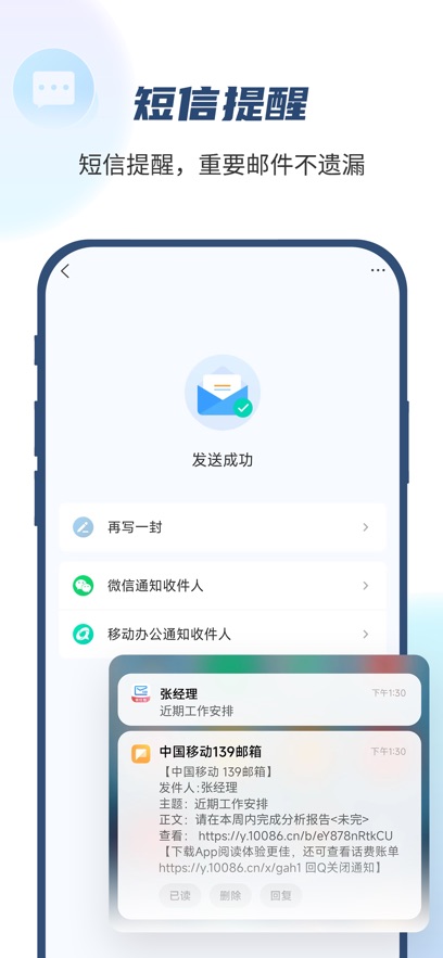 配备新邮件到达实时推送与短信到达提醒双重保障机制,确保用户在第一时间知晓重要邮件的到来,从此告别因疏忽而错过关键信息的困扰,让沟通与决策始终保持高效及时。