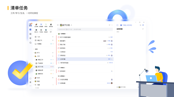 清晰分类:通过清单、文件夹和标签高效分类任务,同时优先级标记帮助区分任务的重要程度。