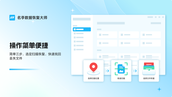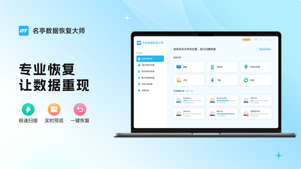 名亭数据恢复大师可以适用在多个场景,能够帮助有效的恢复丢失的文件,软件界面操作非常的简单,内置的强大功能,支持在线预览丢失的文件。