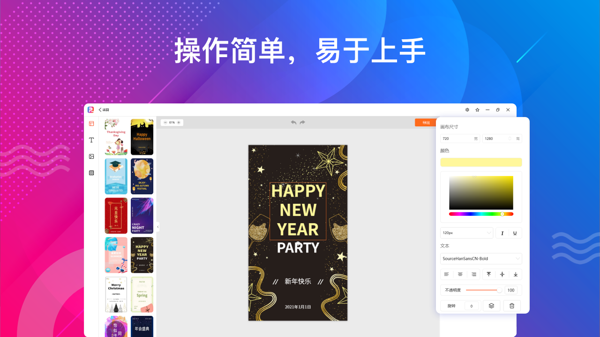海报设计大师软件是一款功能强大的的海报设计软件,软件能够适用大多数不同的用户群体,能够帮助用户制作各种精美的海报,海报设计大师2025最新版软件提供了大量的模版、图像元素、文字样式等,即时没有经验的用户也可以快速上手制作好看的海报。