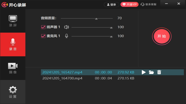极简质量调控,满足个性需求:摒弃繁琐复杂的参数设定,开心录屏把调节视频、音频质量变得像调节音量一样简单。