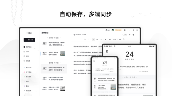 多端同步:支持Mac、Windows、iOS、Android等平台,无缝同步,随时随地更新您的日记。