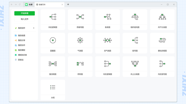 知犀思维导图提供了非常简洁的用户界面,用户可以通过拖拽,点击等方式创建节点,里面内置了丰富的素材模版可以设置使用。