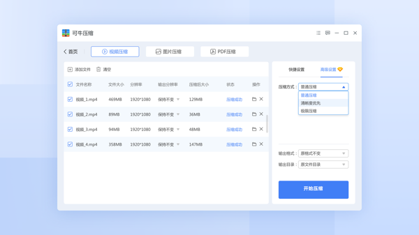 踏入可牛压缩的世界,首先映入眼帘的是简洁素雅的界面,一切繁杂设置皆被简化。专业级的压缩参数早已预设妥当,新手小白也毫无上手难度,压缩速度、压缩率随心调控,压缩体验尽在掌握。