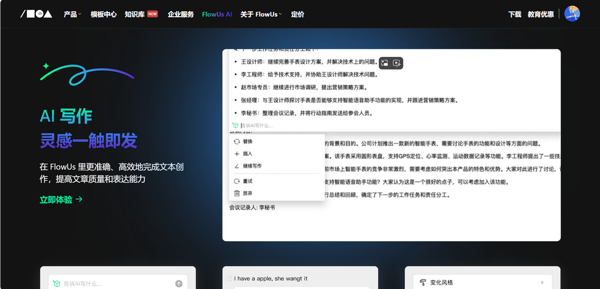 FlowUs提供了实时在线文档编辑,支持多人同时编辑,用户可以在文档中插入文字、图片和表格等,支持系统自动记录文档的历史版本,用户可以随时查看和恢复旧版本。