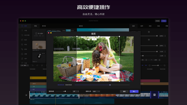 界面设计简约而不简单,布局清晰合理,新手小白无需教程,上手就能剪出惊艳作品。导入素材轻快便捷,手机里的视频转瞬即达编辑区。