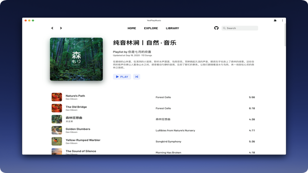 YesPlayMusic支持多种播放模式,用户可以根据自己的需求进行调整播放,还能够查看、创建、管理自己的音乐歌单。