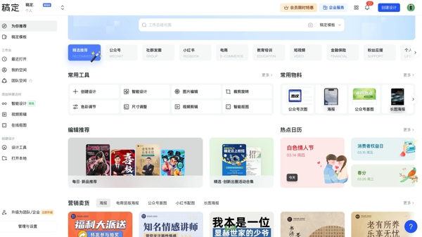 稿定设计app免费版是一款功能全面的平面设计软件,这里提供了丰富的模版、简便的操作和个性自定义功能,能够让用户快速制作的各种设计任务,稿定设计电脑版提供了宣传海报、名片、广告图等设计模版内容,软件能够为用户提供便捷的设计解决方法。