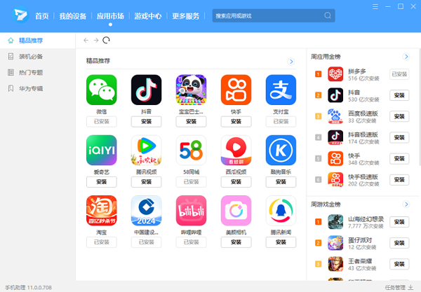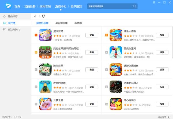 能在电脑端对手机应用进行查看、安装、卸载操作,并且可一键完成应用程序的在线升级,让手机应用可始终保持在最新状态,便于用户及时体验新功能与安全性优化。