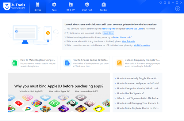3utools中文版是一款功能全面的iOS设备管理工具,软件提供了文件你管理、备份恢复和刷机越Y等功能,帮助用户轻松管理自己的设备,3utools电脑版不管是新手小白还是专业的技术爱好者,软件都能满足多种需求,还拥有丰富的个性化设置可以体验。