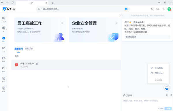 亿方云2025最新版是一款功能全面的企业云存储服务平台,亿方云电脑版中用户可以在不同的设备间同步文件进行团队协作,用户可以方便地设置文件夹共享权限,支持实时在线编辑与评论,团队成员可以高效地进行共同工作。
