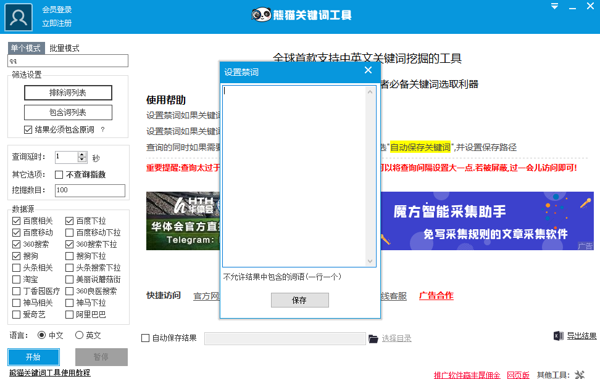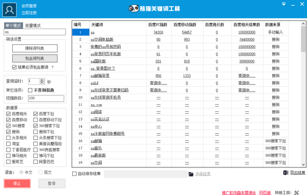 双语拓展全球:作为首款支持中英文双语的关键词工具,它不仅能深挖国内关键词数据,还能迅速锁定国外英文热词,无疑是英文站站长与外贸从业者驰骋国际市场的得力助手。