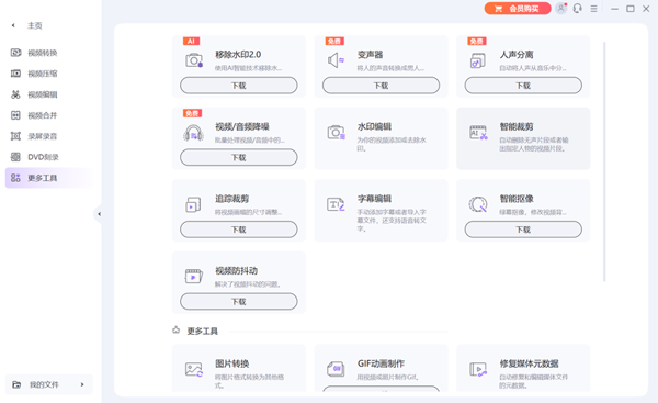 具备图片格式转换、GIF 动图制作、VR 视频转换、DVD 翻录、CD 刻录和翻录等多种功能,可满足用户在视频、音频和图像处理方面的多样化需求。