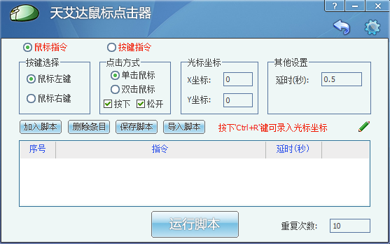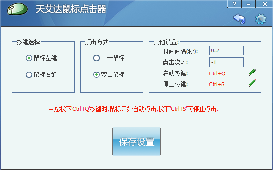 天艾达鼠标连点器是一款非常强大的鼠标连点器,天艾达鼠标连点器最新版之中用户可以使用该软件快速设置好鼠标的自动点击频率,在该软件之中鼠标的频率设置完成之后就可以选择好快速频率,点击开始鼠标将会快速点击好屏幕。