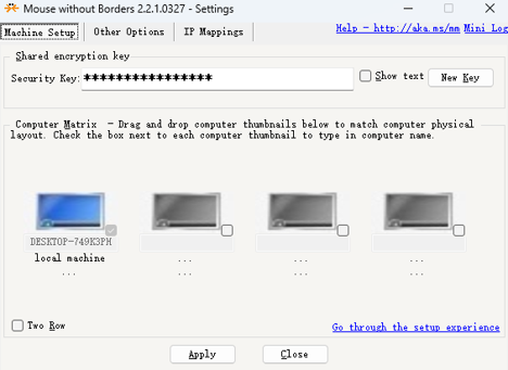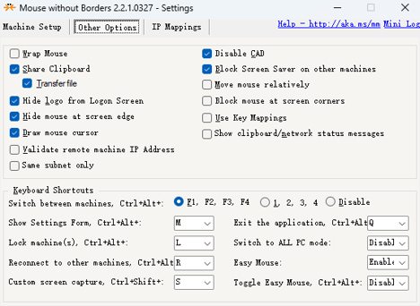 Mouse Without Borders软件是一款多功能鼠标辅助工具,该的软件能够用户无缝控制多台计算机,支持剪贴板和文件拖放,Mouse Without Borders电脑版设置过程简便,支持自定义功能选项,可以轻松减少桌面上多个鼠标和键盘的空间占用。