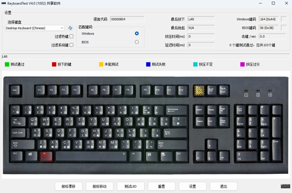 扫描码显示:可显示 BIOS 和 Windows 键盘扫描码,方便专业用户进行深入的键盘分析和故障排查。