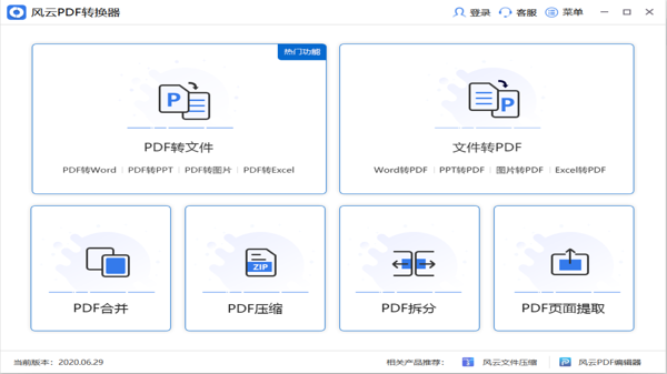 风云PDF转换器免费版是一款简单好用的PDF文件格式转换工具,风云PDF转换器电脑版能够将PDF文档转换成Word、PPT等文件格式,能够准确保留原文件的格式、布局、字体和图片,能够提升转换后文件的质量和可读性。