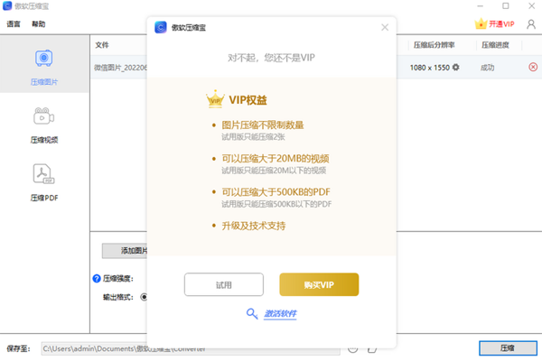 批量处理高效:支持批量导入文件进行压缩,可一次性添加多个图片、视频或 PDF 文件,软件能快速批量处理,大大提高工作效率,适合处理大量文件的情况。