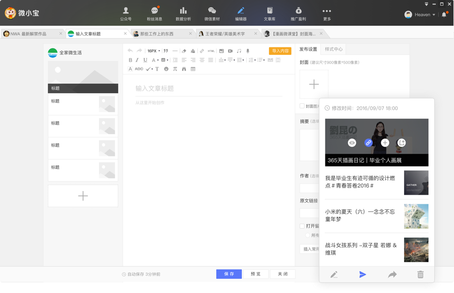 微小宝之中有着非常多的公众号功能,在这里可以快速解决公众号分发的功能,保证整个公众号可以自动分发内容,还可以直接和粉丝互动,以此来提升公众号的活跃度。