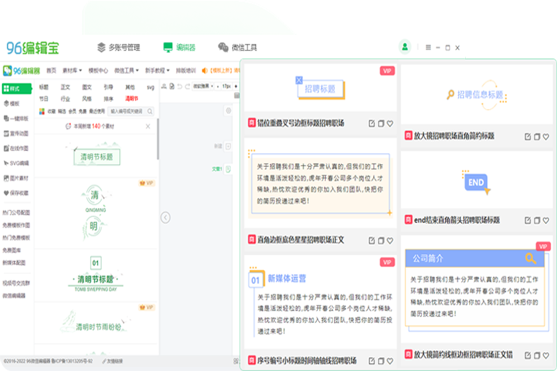 软件内置微信编辑器,有丰富编辑工具与多样模板,支持多媒体元素编辑。运营人员能在软件内轻松设置文字格式、挑选模板,快速完成精美排版,增强公众号内容吸引力。