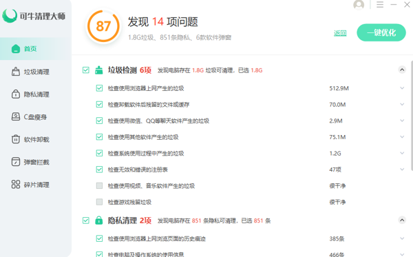 可牛清理大师电脑版是一款直观全面的垃圾清理软件,可牛清理大师PC客户端可以扫描并清理设备中的各种垃圾文件,快速清理缓存、广告残留、安装包、无用的日志文件等,帮助释放存储空间,能够让用户清晰了解各个应用的资源占用情况。