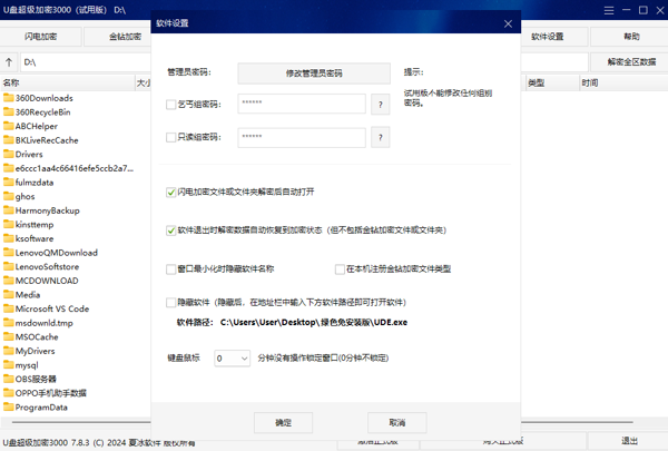 U盘超级加密3000软件可以让用户轻松设置添加移动硬盘设备的加密防护工具,保护文件不被恶意篡改,还提供了友好的用户界面,没有经验的小白也可以快速上手。