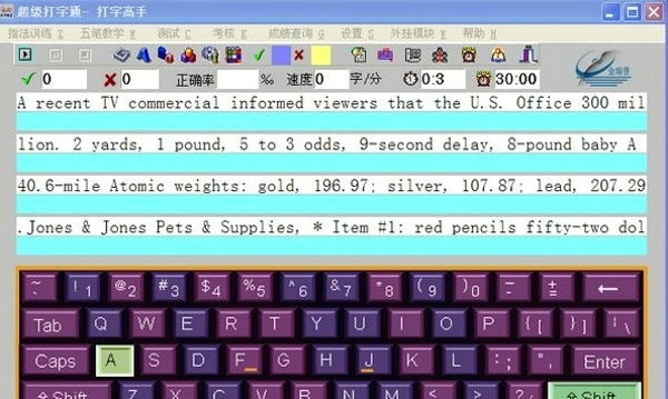 定时间、定文章考核增强针对性:为了增加练习的挑战性与针对性,软件还设置了定时间、定文章的中、英文录入考核功能。用户可以根据自己的实际情况,设定考核时间以及选择相应的文章进行录入考核。