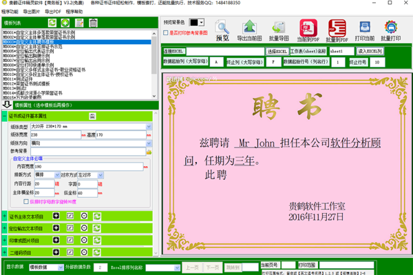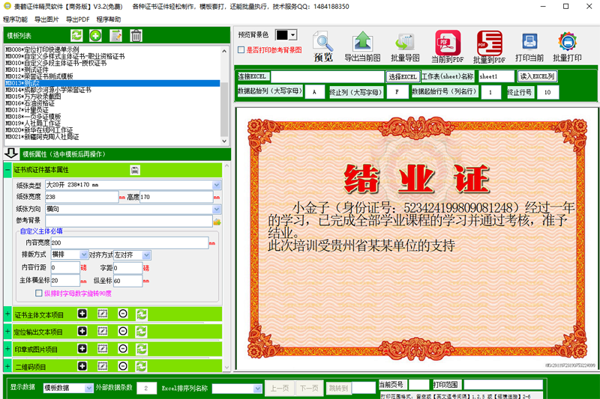 多种证件类型支持:能够轻松批量打印毕业证书、学生证、荣誉证书、会议出席挂牌、会员证、快递单、模板式劳动合同等多种证件类型,满足不同用户在各种场景下的需求。