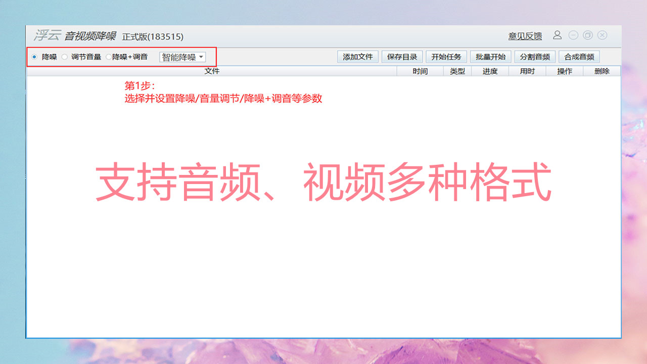 浮云音频降噪之中用户可以在语音之中使用该软件,但是其实我们也可以将音频传入到该软件之中,该软件自带的音频降噪功能,可以极大的消除音频之中的风声、水声等等杂音,最后得到纯净的声音。