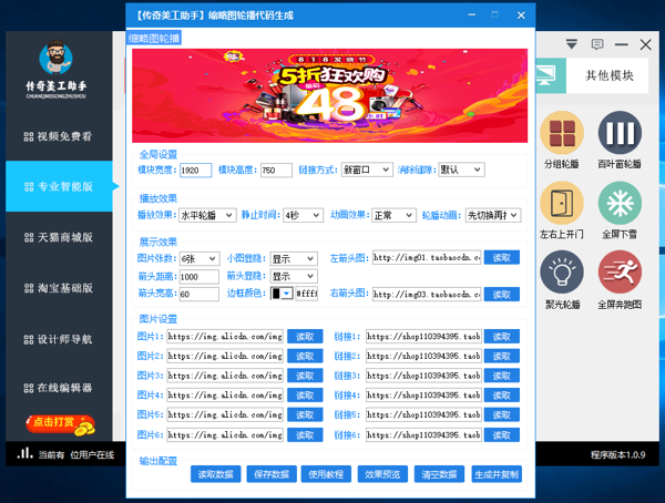 传奇美工助手是一款专为网店店主设计的网店装修工具,传奇美工助手2025最新版提供丰富的专业特效,如动态效果、渐变效果、弹跳效果等,帮助店主使网店页面更加生动和吸引眼球,支持将视频内容嵌入网店页面,店主可以将产品视频、宣传视频等直接展示给客户。