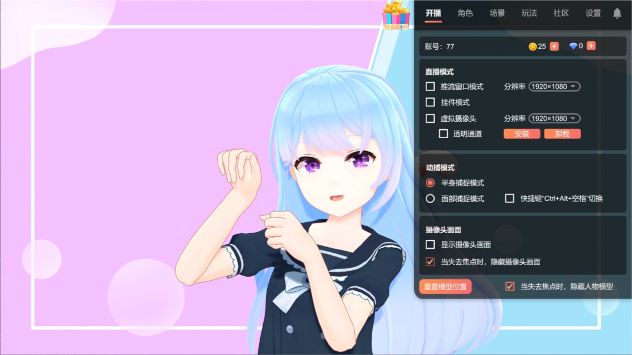 小K直播姬使用起来非常好用,用户只需要导入模型然后开启摄像头就可以使用,该软件会自动选中人体然后进行配对,用户可以选择用免费模型也可以自己导入模型文件。