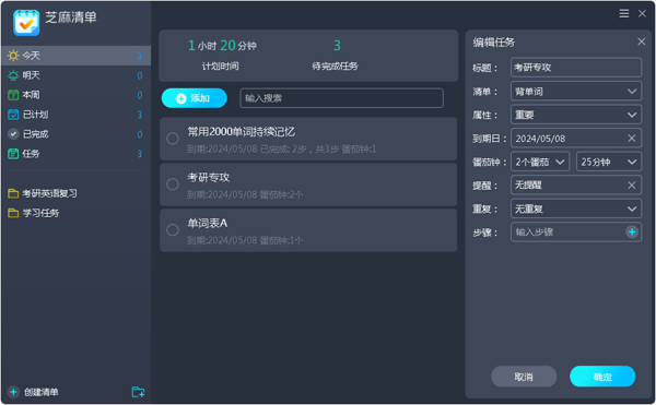 日程规划与提醒精准:能为每个任务设定截止日期和提醒时间,可设置提前多天、多时段的多次提醒,确保不会错过重要事项。