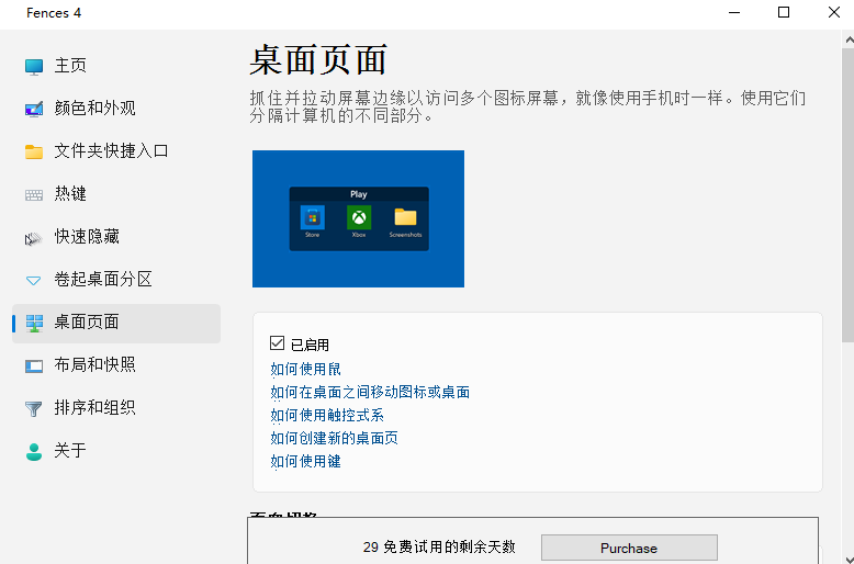 Fences之中用户可以直接使用该软件进行智能桌面图标分类,依照软件的类型以及文件的类型来进行分类,可以将文件分类成不同的格栅,并且用户在创建或者安装软件的时候会进行自动分类,非常方便。