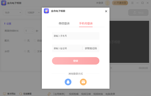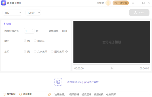 金舟电子相册软件是一款功能强大、操作简单的图片转视频软件,金舟电子相册电脑版支持将多张图片一键合并为视频MV,可以为视频选择合适的背景音乐,或者使用自定义音乐,让视频更加生动、富有情感,支持多种音频格式,保证音乐与视频的完美融合。