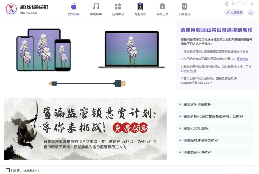 设备管理便捷:具备激活和反激活、一键开关小白点、屏蔽 iOS 更新、删除废图标、抹除所有内容、一键关机重启进入恢复模式等功能,方便用户对设备进行各种设置和管理,提升设备使用体验。