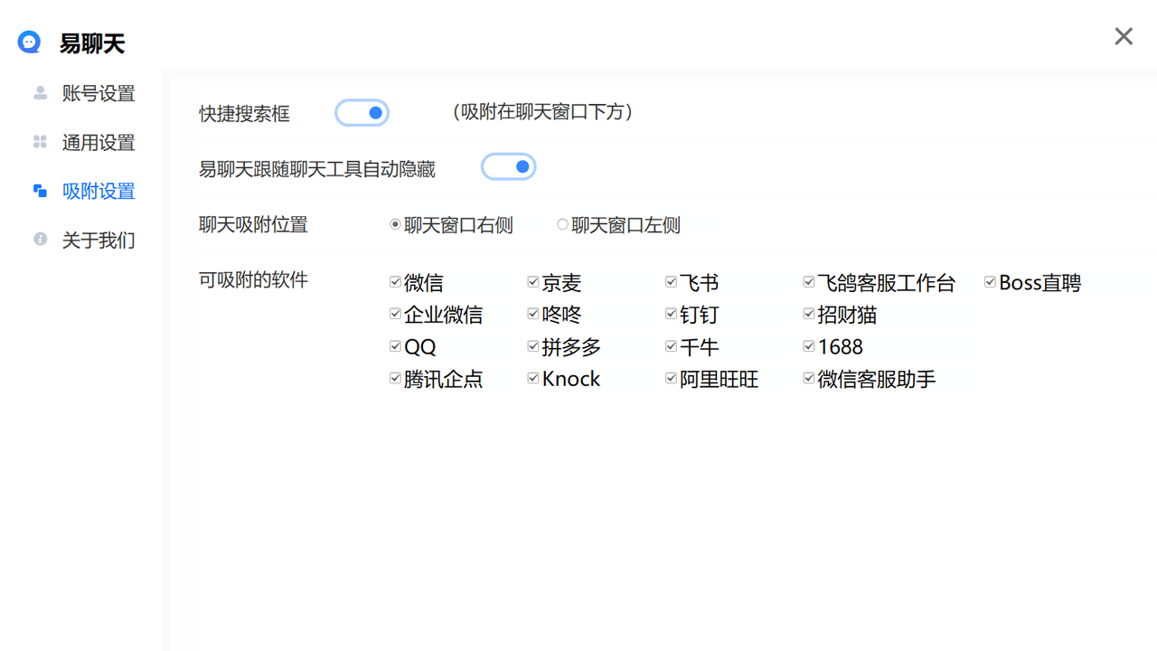 自动适配 QQ、微信、旺旺等聊天工具,实现多平台消息一站式集中处理。