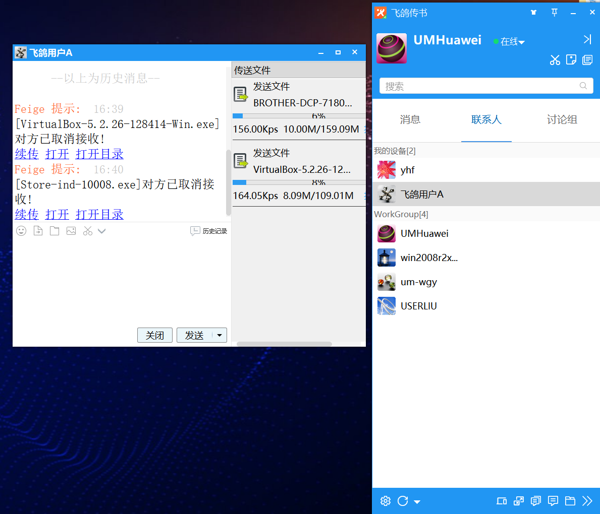 在文件传输方面,飞鸽传书表现卓越。它支持大文件以及文件夹的高速传输,传输速度最高可达网络带宽上限,并且对文件大小没有任何限制,无论是 G 级还是 T 级的大型文件,都能轻松应对。