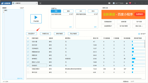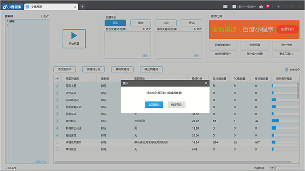 多平台支持:支持百度、神马、点睛、搜狗等主流平台,用户可根据自身推广需求,选择相应平台进行关键词拓展和分析,实现跨平台统一操作,提高工作效率。