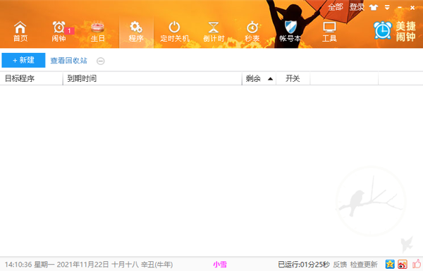 美捷闹钟电脑版是一款轻巧、实用的电脑闹钟软件,美捷闹钟2025最新版能够创建多种日程任务内容,添加闹钟、设置日程仅需几步操作,闹钟、日程、计时器等数据互不干扰,可同时运行多个任务,满足多场景并行的时间管理需求,无需切换多款软件。