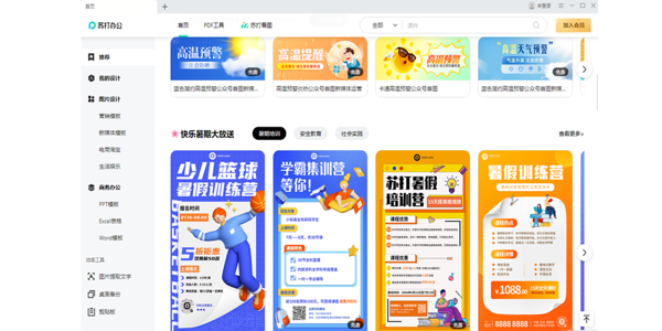 软件内置丰富的模板库,涵盖 PPT、Word、Excel 等各类文档模板,广泛应用于总结汇报、竞聘述职、财务会计、人力行政、教师教学、求职简历、教学课件、毕业答辩等领域。