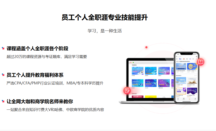 提供 “平台 + 内容 + 运营” 一站式服务。平台是定制化学习空间,集课程搜索、学习跟踪等功能于一体。内容涵盖各类课程,形式多样且贴合企业需求。运营团队全程支持,从计划制定到效果评估,保障培训顺畅。