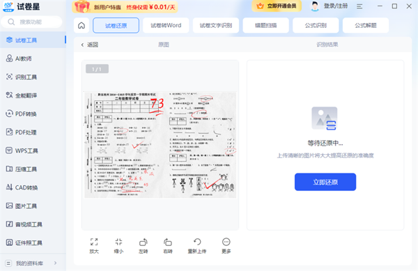 识别技术先进:采用先进的 OCR 文字识别技术,能够快速、准确地将纸质试卷上的文字内容转换为可编辑的电子文本,无论是印刷体还是手写体都能轻松应对,提高了识别的准确率和效率。