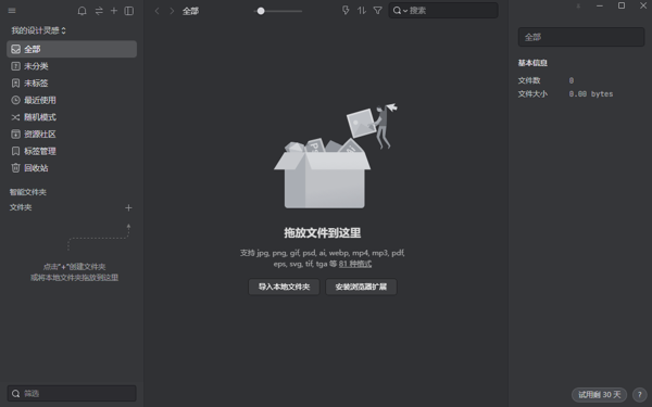 多种导入方式:支持从电脑文件夹、移动硬盘、网络等多渠道导入素材,也可通过浏览器插件直接从网页收集图片。还能批量导入大量素材,提高素材收集效率。