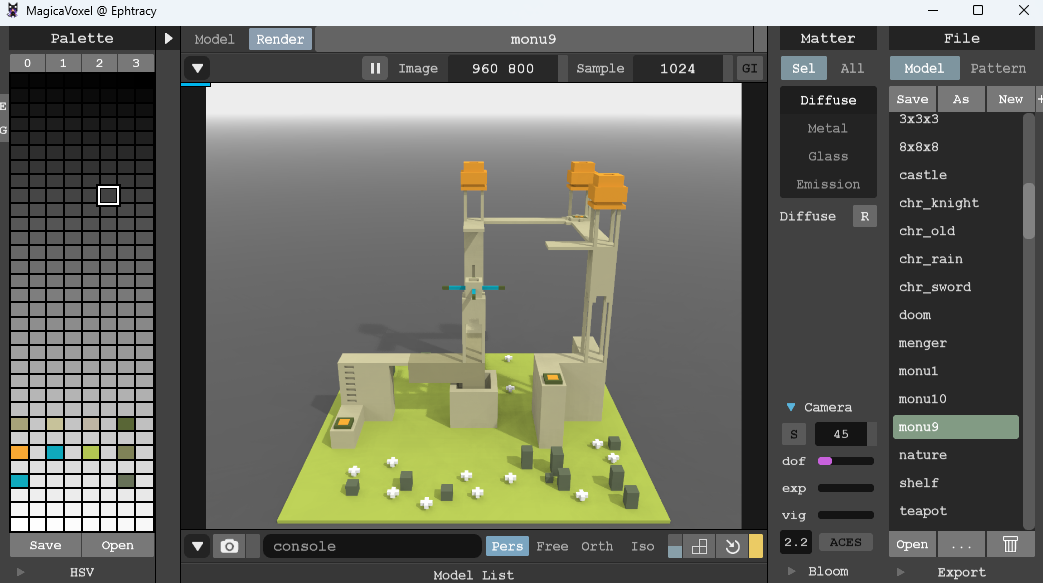 MagicaVoxel是一款非常强大的像素建模软件,MagicaVoxel中文版之中,用户可以随意使用软件之中的工具,帮助与用户可以轻松建造一个数据自己的像素图像,该软件不仅仅是能建造2d像素小模型,还能建造3D模型。