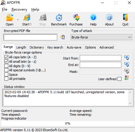 APDFPR电脑版是一款高效且专业的PDF密码恢复工具,APDFPR最新版能够立即解除PDF文件的编辑、打印和复制限制,帮助用户高效地进行文件操作,提供多种密码恢复模式,用户可以根据PDF文件的具体保护强度选择不同的攻击方式。